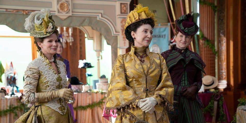 “镀金时代”很好地展现了美国这个时代的显著变化,比如电灯泡、电话和电影的出现,更不用说铁路时代的到来了。然而,最令人印象深刻的时代变化展示并不是在技术和交通上,而是在剧中女性人物的漂亮裙服上,这些裙服的鲜艳颜色是由新型人工染料带来的一场令人眼花缭乱的变革。