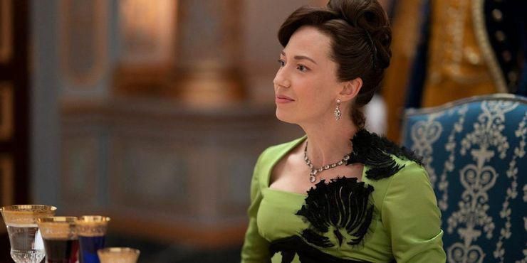 铁路大亨乔治·罗素的妻子,纽约被鄙视的“新贵”的面孔,伯莎·罗素是《镀金时代》中迄今为止最大胆的角色,她的色调反映了这一点。她的礼服通常是房间里最亮的,比如她在《镀金时代》第一季第三集与奥斯卡·范·莱茵共进晚餐时穿的那件青绿礼服。同样值得注意的是,这条裙子的颜色可能代表了她的新财富,而不是奥斯卡·范·莱茵的“旧财富”,而这条裙子的绿色也可能意味着伯莎对奥斯卡·范·莱茵家人的极度嫉妒。