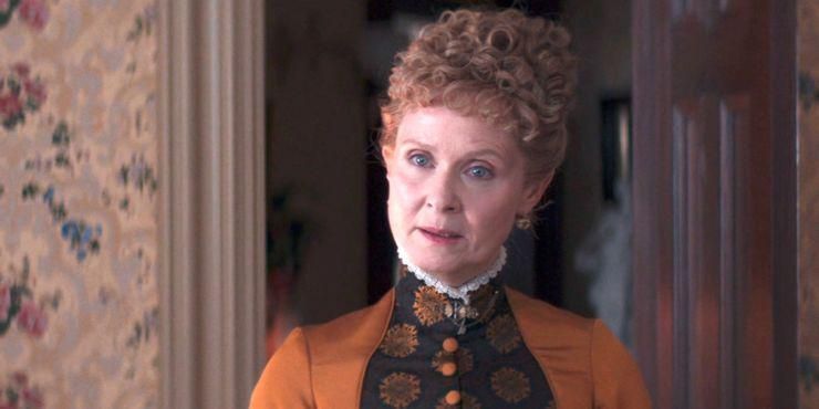 在《镀金时代》中,玛丽安的老处女姑姑艾达和她的姐姐有着相似的风格,她穿着大地色系,虽然她的调色板比艾格尼丝淡,但她的性格也是如此。艾达比艾格尼丝更善良、更开放,她的色调延续了家庭作为纽约社会基石的理念。艾达经常穿着橙色和铁锈色的衣服,与艾格尼丝闪亮的丝绸和绸缎相反,艾达的衣服经常是亚光的。